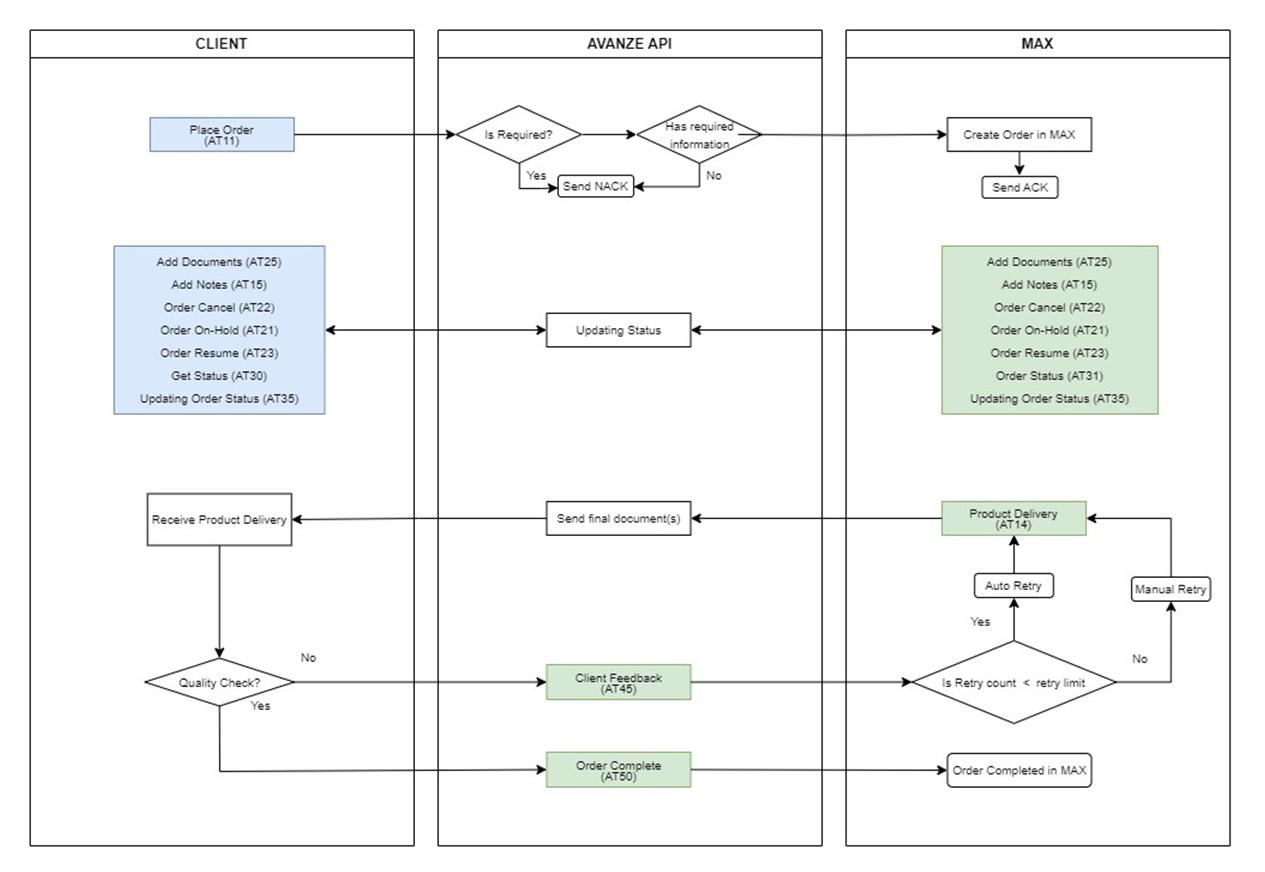 Back To HomeThe Client Integration Guide serves as a comprehensive resource for facilitating the seamless integration of MAX with client applications through the MAX API. It equips users with essential information necessary for the successful receipt of orders and the submission of products upon order completion.